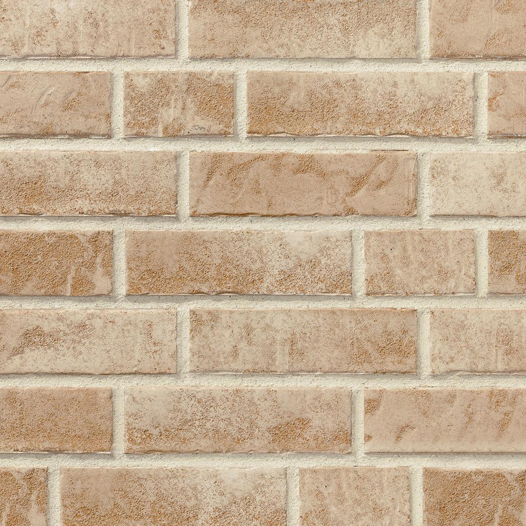 Klinkerriemchen in sandbeige mit charmant und auffällig rustikaler Oberfläche.